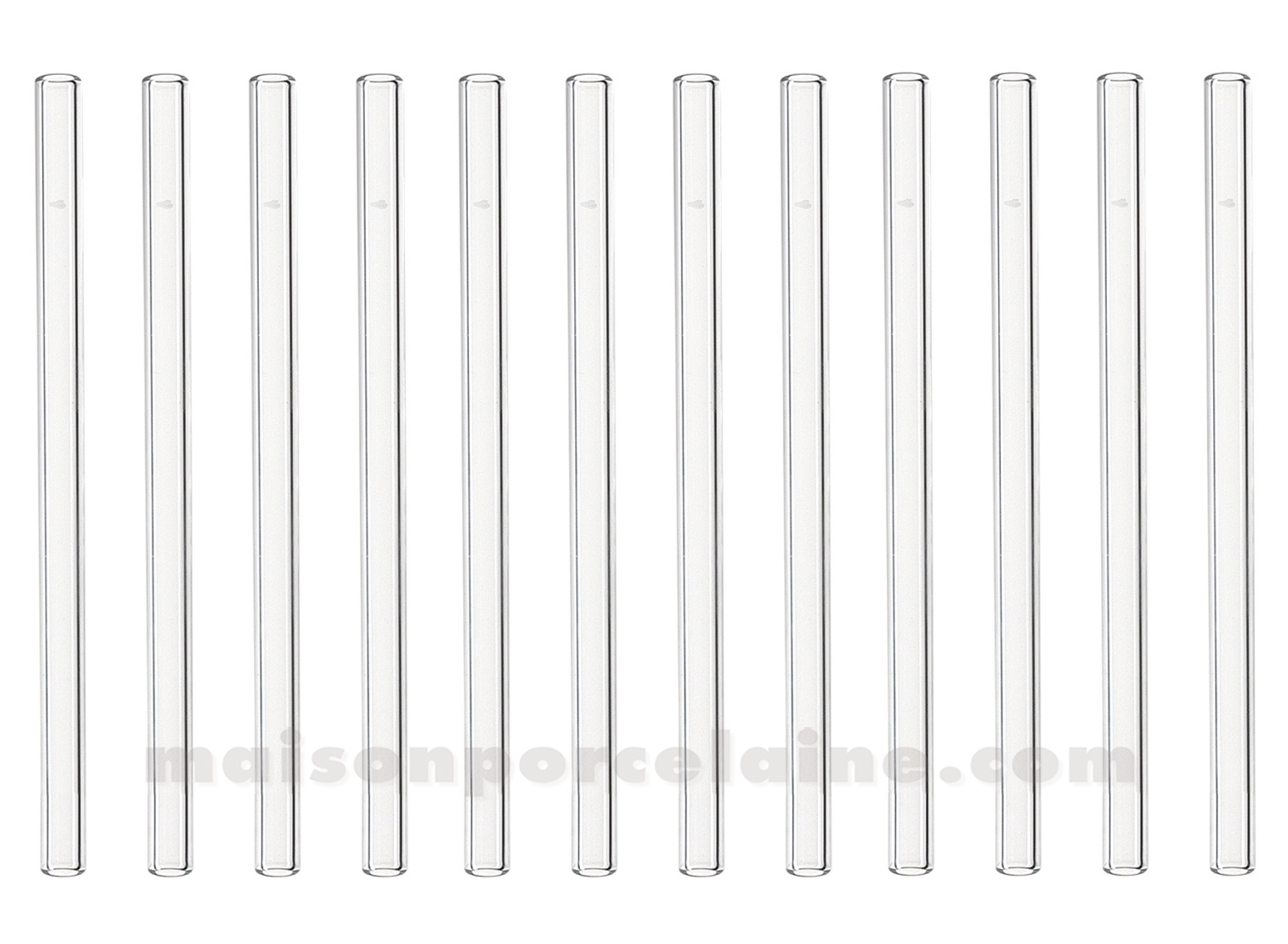 PAILLE VERRE DROITE TRANSPARENTE - 20CM - BROSSE - BOITE/12PCS