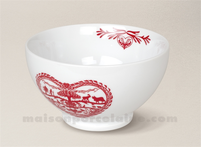 Avec' Montée aux Alpages', la Maison de la Porcelaine vous offre une table de Noël bucolique : scènettes de la vie paysane, paysages et animaux de nos montagnes traités en silhouettage. Une exclusivité Maison de la Porcelaine déclinée en rouge, cuivre