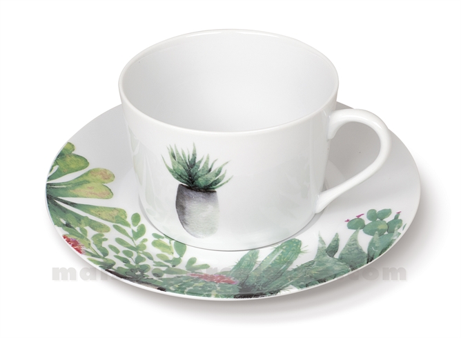 C'est au célèbre jardin de cactus de Lanzarote ( IlesCanaries ) que la Maison de la Porcelaine doit l'inspiration de ce nouveau décor aux verts toniques. La variété de ses motifs permet d' habillerpour une très large sélection de nos collections de porcel