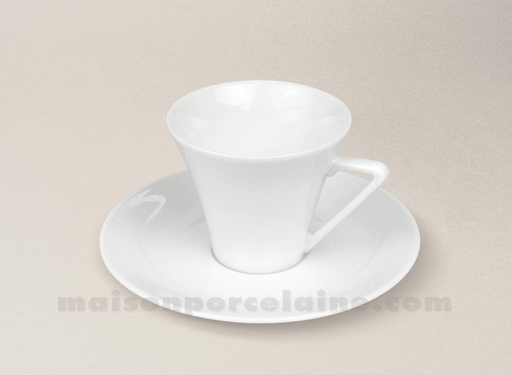 TASSE CAFE+SOUCOUPE PORCELAINE BLANCHE HAUSSMANN FABRIQUEE EN FRANCE 10CL