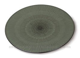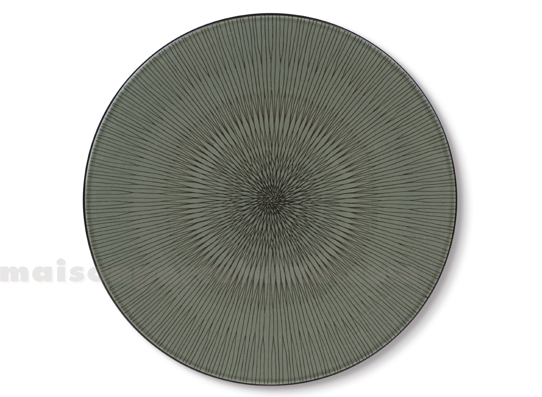 Grès Hypnose : des lignes noires entrelacées d'une infinie finesse, subtilement incrustées dans un pâte ivoire soyeuse à l'oil, s'étirent des bords de l'assiette et convergent vers un cente aboslument hypnoptique. Une nouveauté toute en grace et élégance