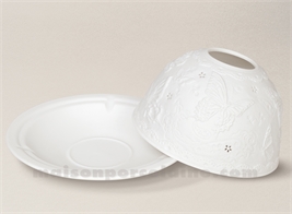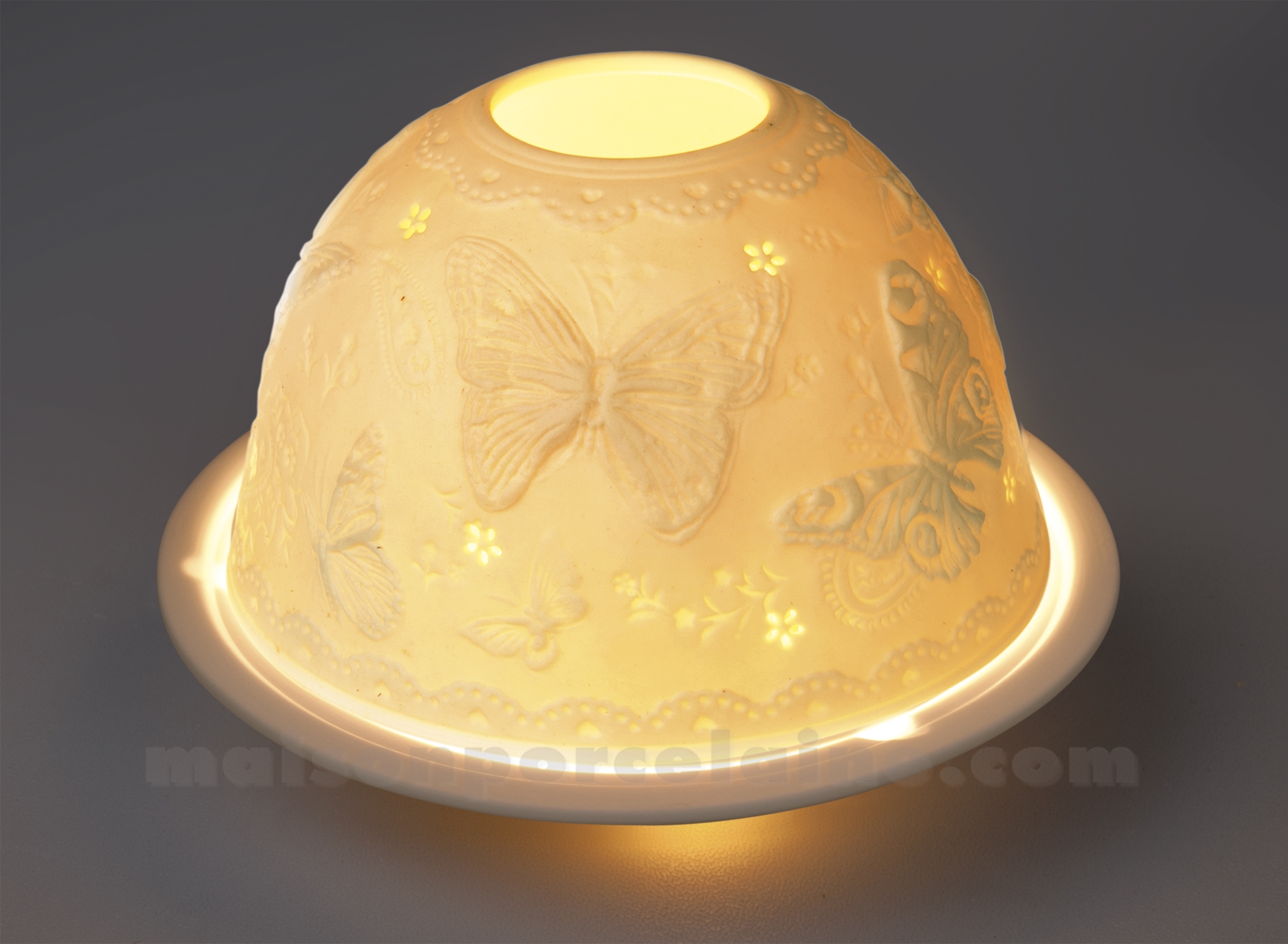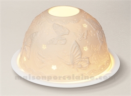 PHOTOPHORE LITHOPHANIE BISCUIT DE PORCELAINE AJOUREE PAPILLONS