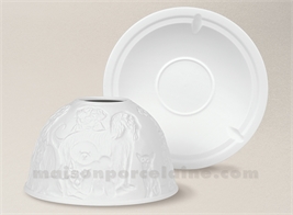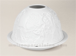 PHOTOPHORE LITHOPHANIE BISCUIT DE PORCELAINE CHIENS ET CHATS