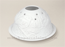 PHOTOPHORE LITHOPHANIE BISCUIT DE PORCELAINE PIAF DANS LA NEIGE