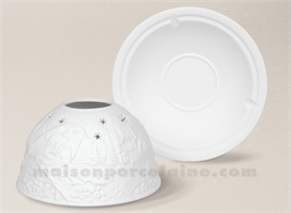 Photophore en biscuit de porcelaine fabriquée selon la technique de le lithophanie.