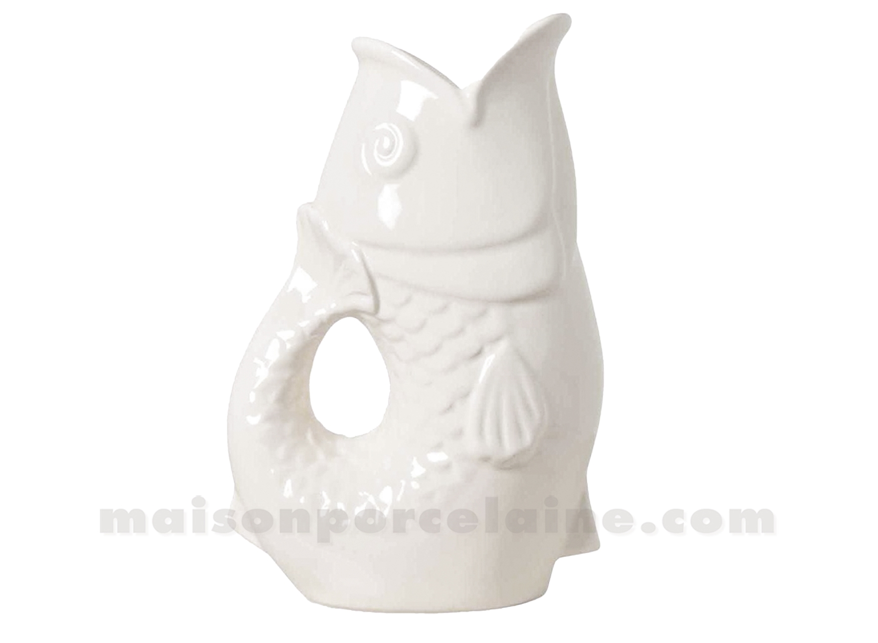 PICHET VASE POISSON GM BLANC CASSÉ L16,5 P11 H25,3CM