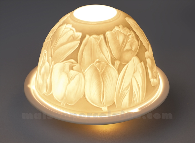 PHOTOPHORE LITHOPHANIE BISCUIT DE PORCELAINE TULIPES