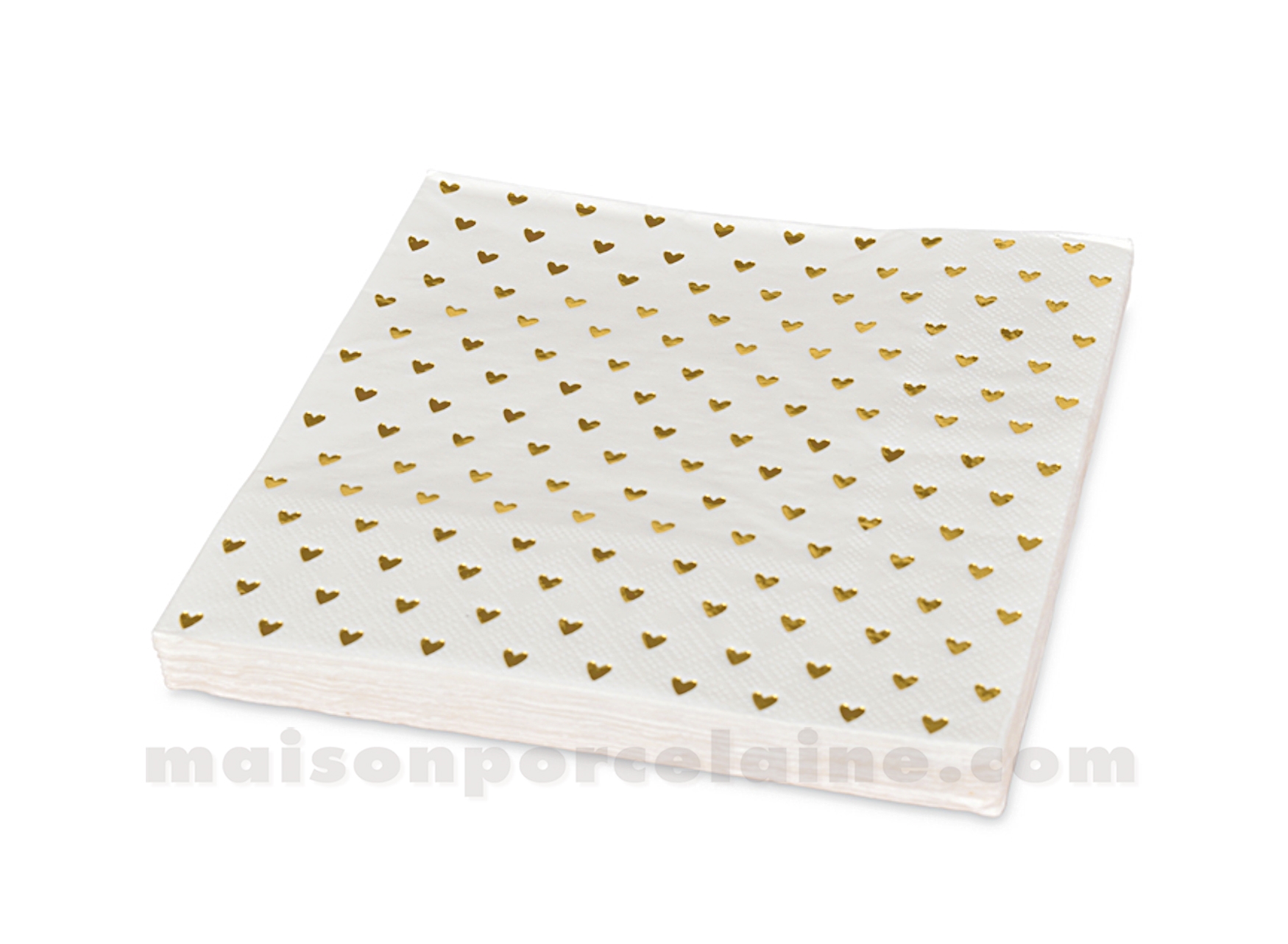 SERVIETTE PAPIER CARRÉES COEUR DORE 20PCS