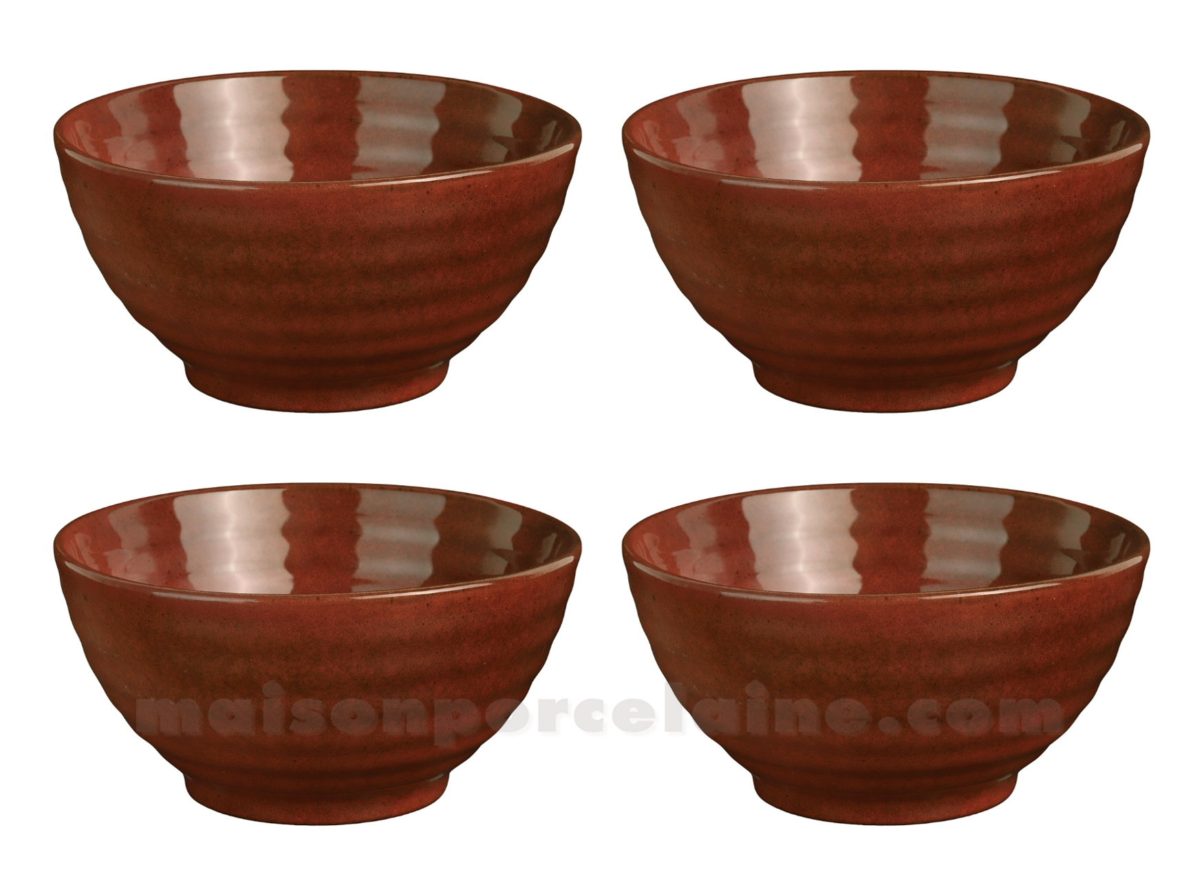 SET 4 BOLS A RAMEN 110CL GRES MEDARD DE NOBLAT FUJI D18 X9 CM GRENAT