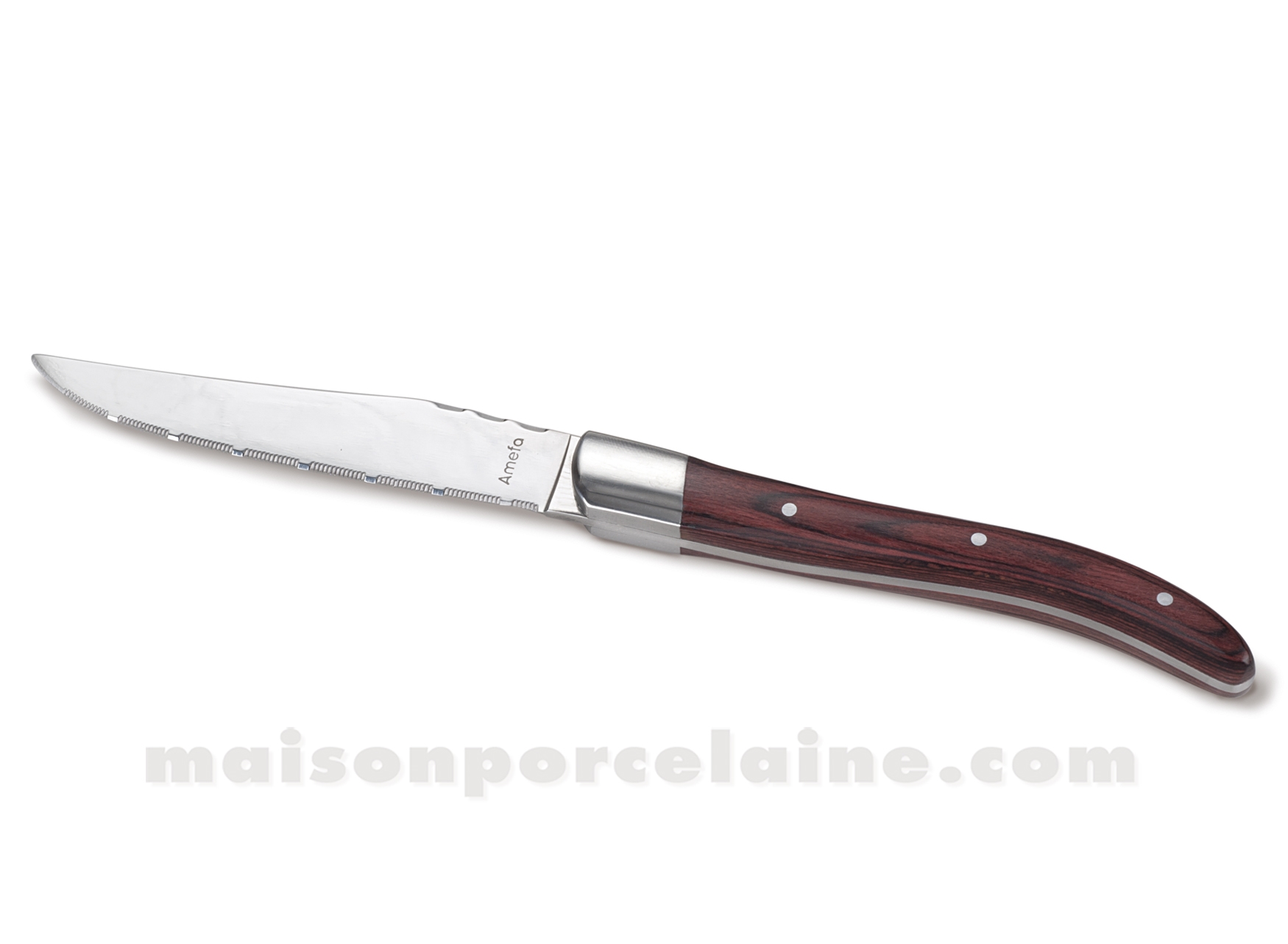 COUTEAU STEAK ROYAL AMEFA MANCHE BOIS - COFFRET GRIS DE 6 PCS
