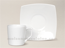 TASSE CAFE CARREE 12CL + SOUCOUPE 13CM PORCELAINE BLANCHE NARA
