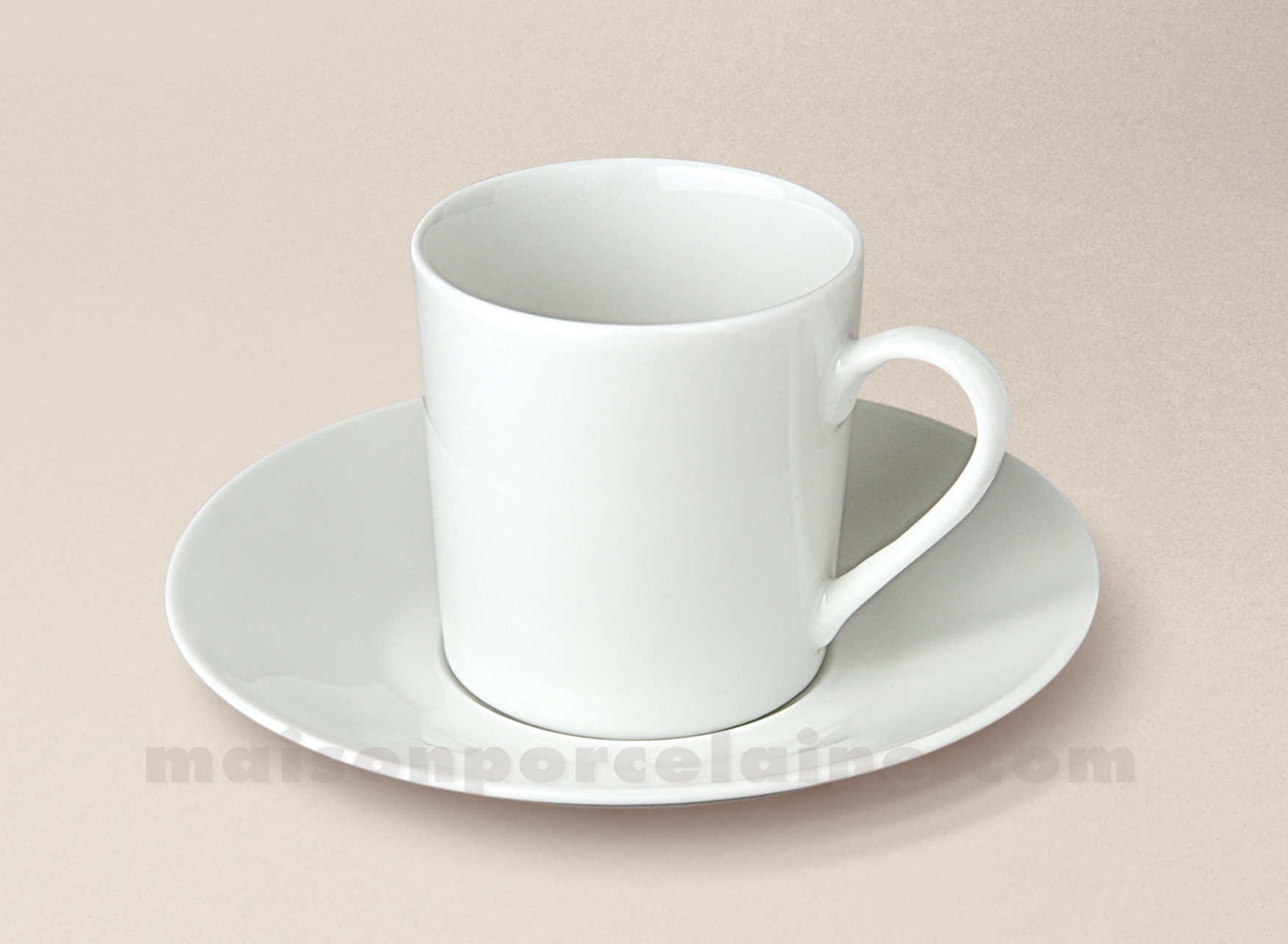 TASSE CAFE+SOUCOUPE PORCELAINE BLANCHE SOLOGNE 10CL