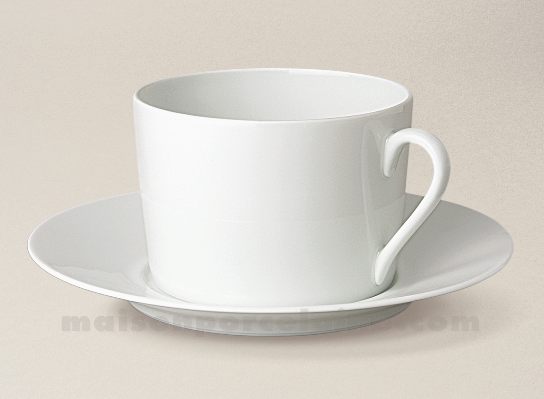 TASSE DEJEUNER+SOUCOUPE LIMOGES PORCELAINE BLANCHE EMPIRE 10X7X17.5 35CL