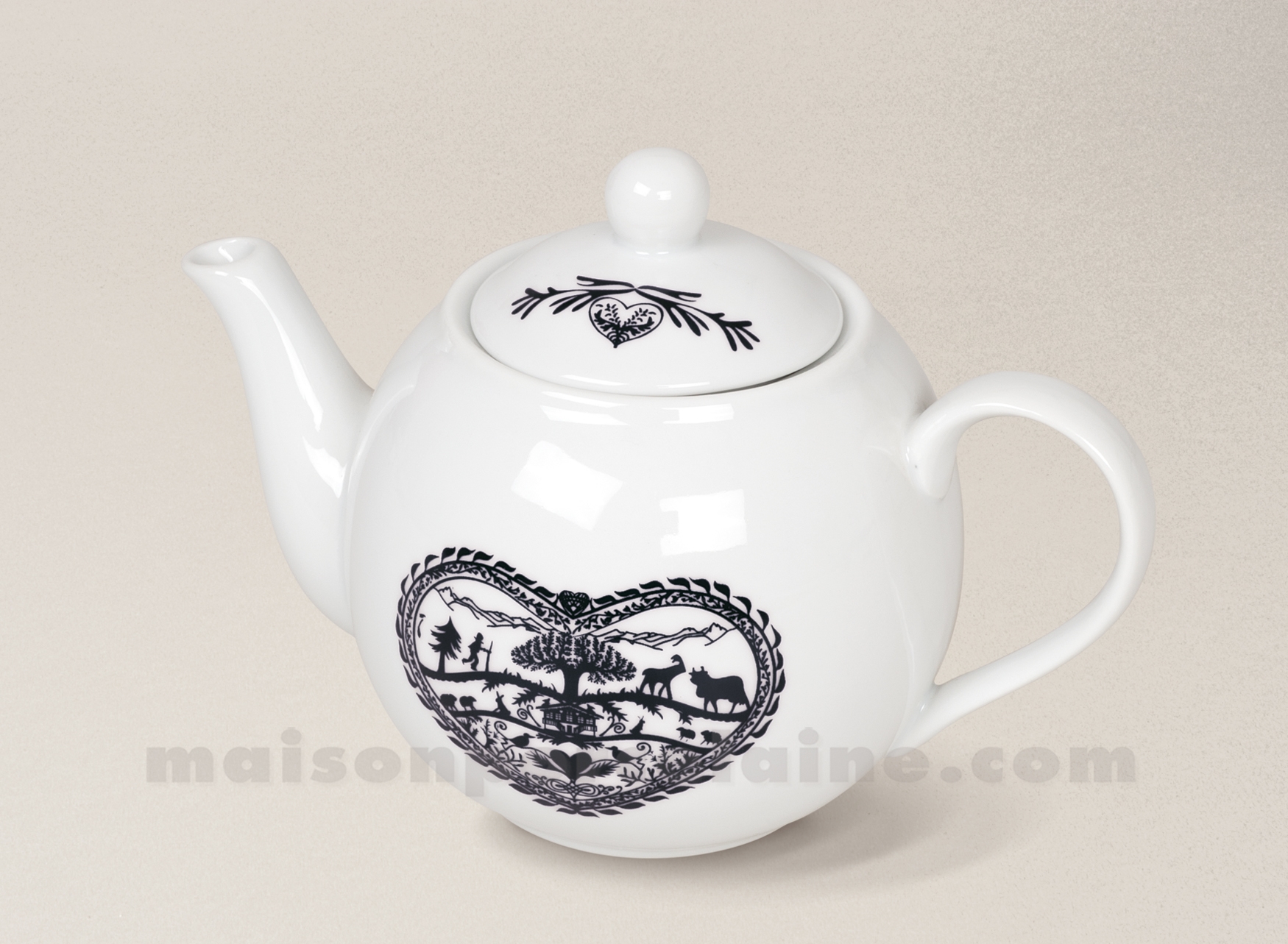 Avec' Montée aux Alpages', la Maison de la Porcelaine vous offre une table de Noël bucolique : scènettes de la vie paysane, paysages et animaux de nos montagnes traités en silhouettage. Une exclusivité Maison de la Porcelaine déclinée en rouge, cuivre
